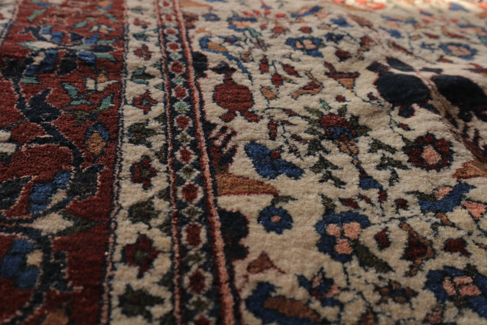 イラン産の上質なヴィンテージラグ。生成りのフィールドに細やかな植物文様がぎっしりと織り込まれ、庭園を思わせる気品あるデザインが魅力です。